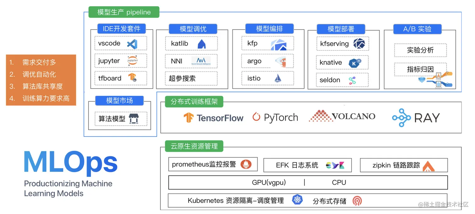 一个从申请机器,配置环境,拉取数据,处理数据,算法训练,调试,模型测试,服务化上线全流程的算法工程师,在下面的每个环境都浪费了很多时间,而不是主要集中在算法模型的构建上