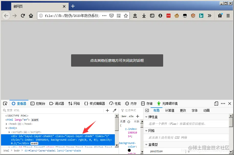 通过查看遮罩层的元素发现它的class是layui-layer-shade,这样子我们编写下面代码解决: