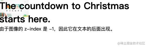 <p>由于图像的 z-index 是 -1,因此它在文本的后面出现。</p>