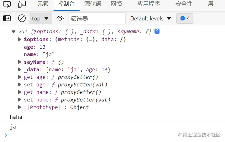 console.log(vm.name)