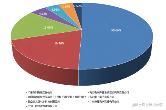新引入的5家战略投资方中,南网能创股权投资基金(广州)合伙企业(有限合伙)(以下简称南网能创基金)投资金额3.84亿元,持股比例15%;东方电子集团有限公司(东方电子集团)投资金额1.16亿元,持股比例4.52%;北京智芯微电子科技有限公司(智芯公司)和广东恒健资产管理有限公司(恒健资产)投资金额均为1.014亿元,持股比例均为3.96%;广州工控资本管理有限公司(以下简称工控资本)投资金额0.64亿元,持股比例2.5%。而企业原有第一大股东广东电网持股比例降至50.66%,第二大股东南网产业投资集团持股比例降至19.40%。