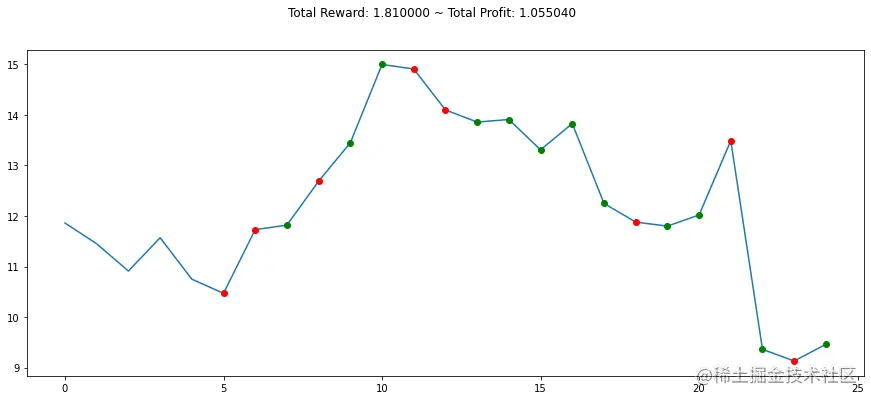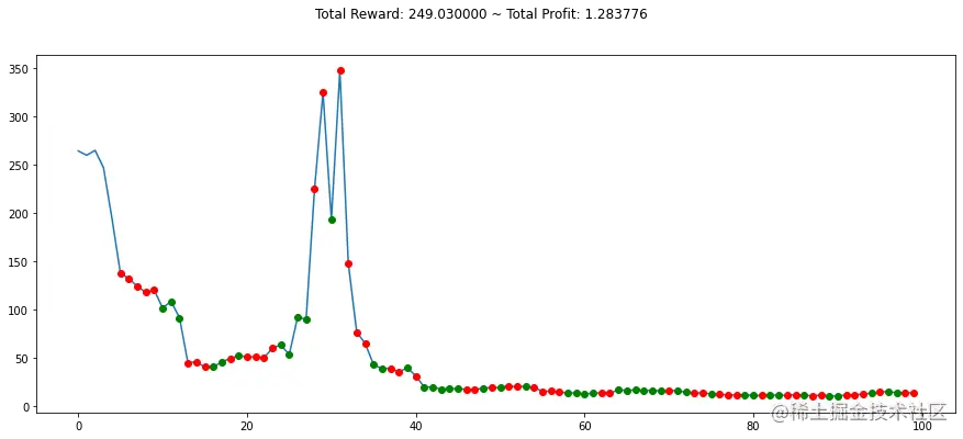 正如我们所看到的,我们的RL代理已经随机地买入和卖出了股票。我们的利润率似乎超过了1,所以我们可以确定,我们的机器人通过它的交易为我们赢得了利润。但这些都是随机采取的步骤,现在让我们正确地训练我们的模型以实现更好的交易。