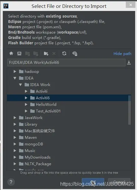 我们选择要导入的文件,这里我选择Activiti6这个项目:
