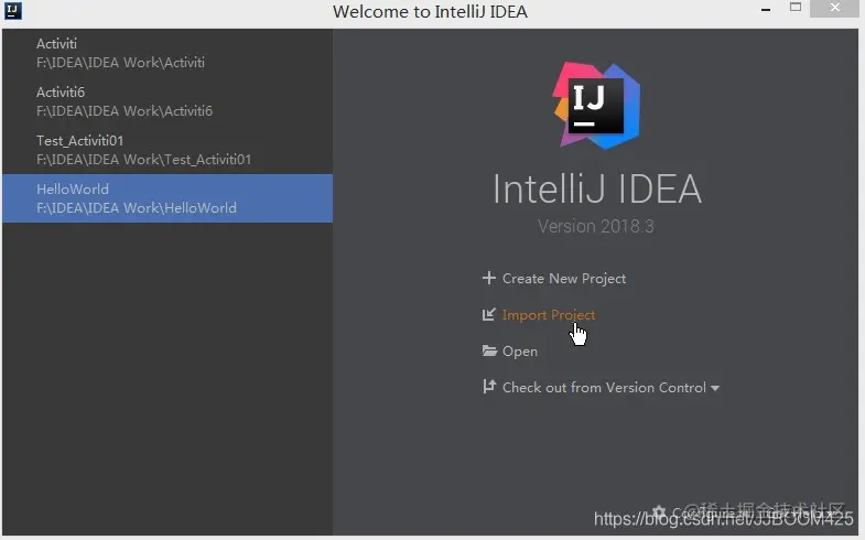 我们关掉IDEA,重新打开进入这个界面,然后选择 Import Project ,导入项目:
