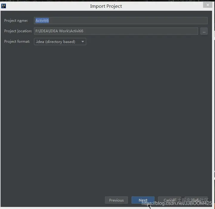 这里输入导入后的文件名,我还是输入Activiti6: