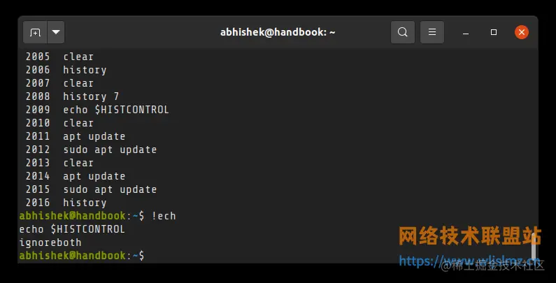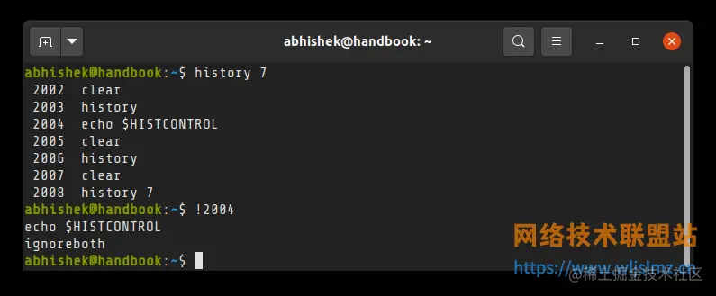 - ignorespace:设置此变量后,您可以通过在命令前面放置一个空格来运行命令。该命令照常运行,但不会包含在历史记录中。