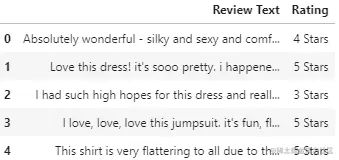 df_reviews = df.loc[:, ['Review Text', 'Rating']].dropna()
