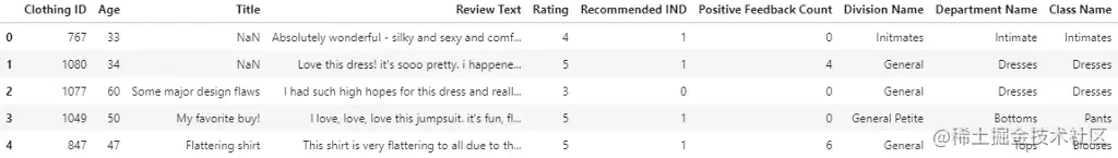 我们将使用一个电子商务数据集,其中包含女性服装的文本评论和评级。