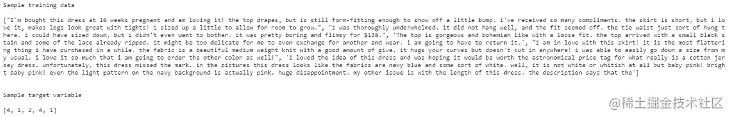 我们只对评论文本和评价列感兴趣。评论文本列作为模型的输入变量,评级列是我们的目标变量,它的值范围是1(最不喜欢)到5(最喜欢)。