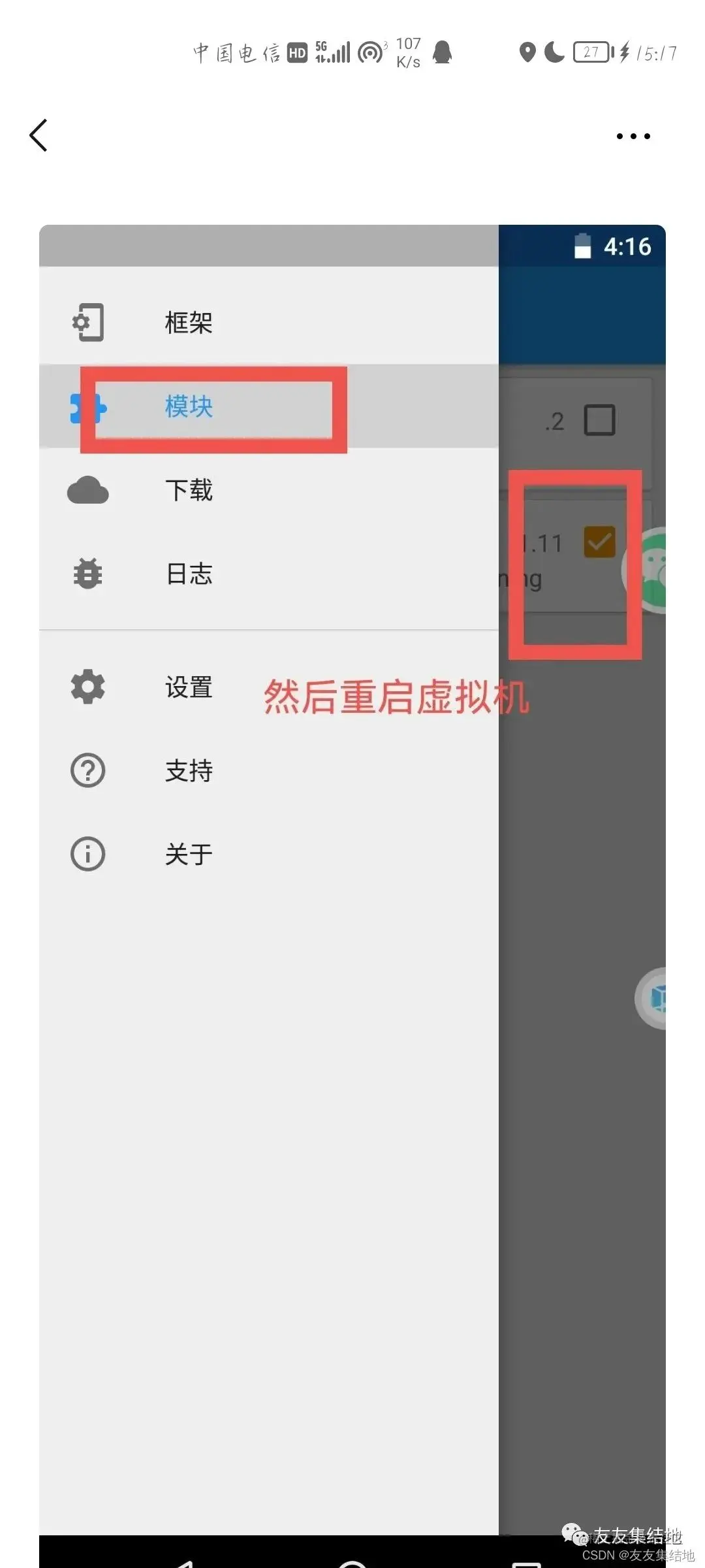此时我们还要在虚拟机中打开超级用户和Xposed框架