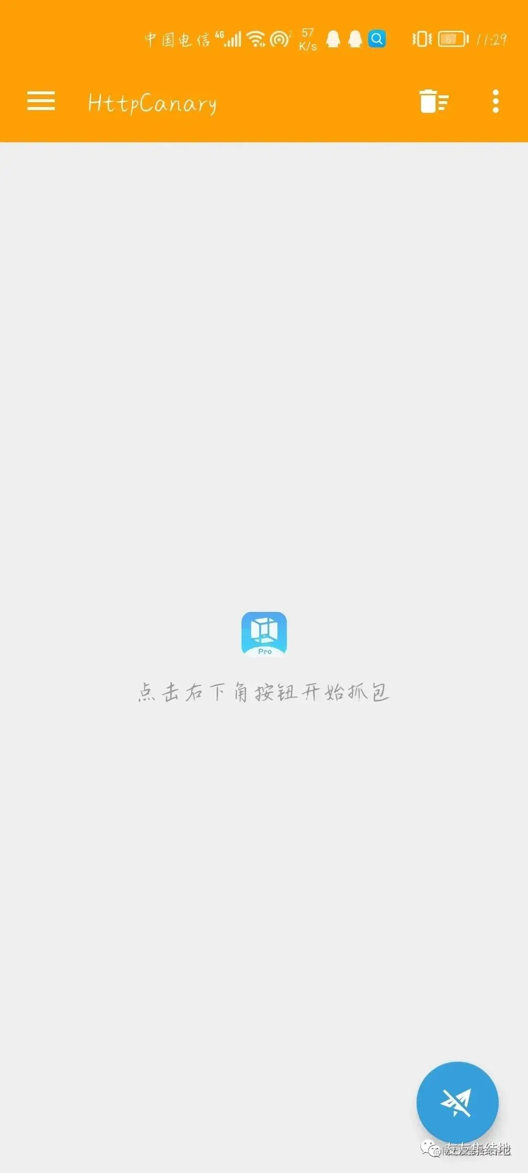 点击那个蓝色的小飞机,则开始抓包,然后打开虚拟机找到我们所需要的抓包的app。