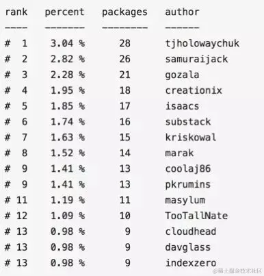 高产到令人发指,Quora上甚至有人猜测TJ不是一个人,而事实上他就是一个人。 substack/npmtop:对node npm社区代码贡献截止目前占到整个社区的3.04%。