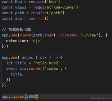 安装koa模板使用中间件 npm install --save koa-views