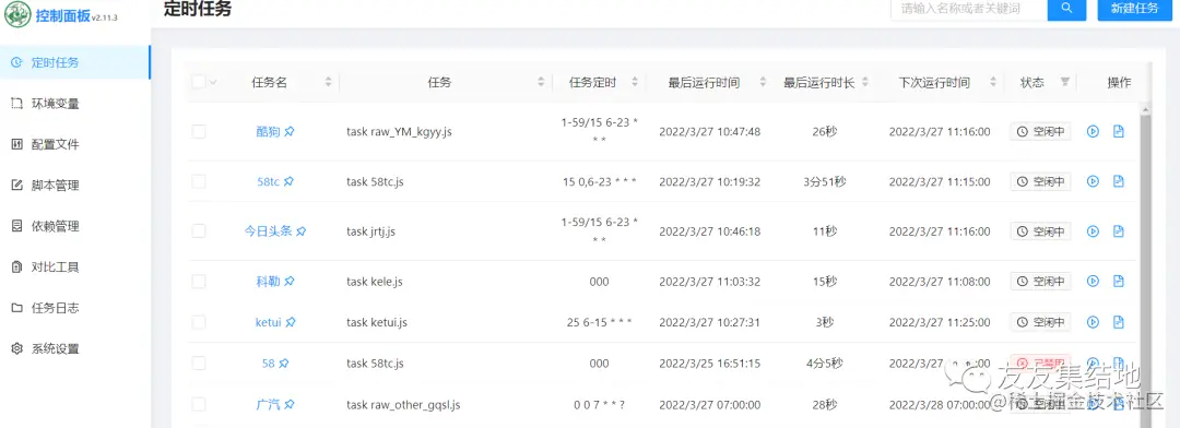 这是安装好的面板,点击新建任务,首先我们进行的第一步是拉库,拉的库的格式一般为ql raw +网站。