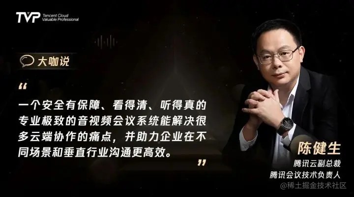 腾讯云副总裁、腾讯会议技术负责人陈健生为与会者带来了题为《腾讯会议助力企业高效沟通》的主题演讲,从腾讯会议背后的技术、连接人与人、人与空间、软硬件融合等方面揭示了目前国内超2亿用户的视频会议应用是怎样炼成的。\
