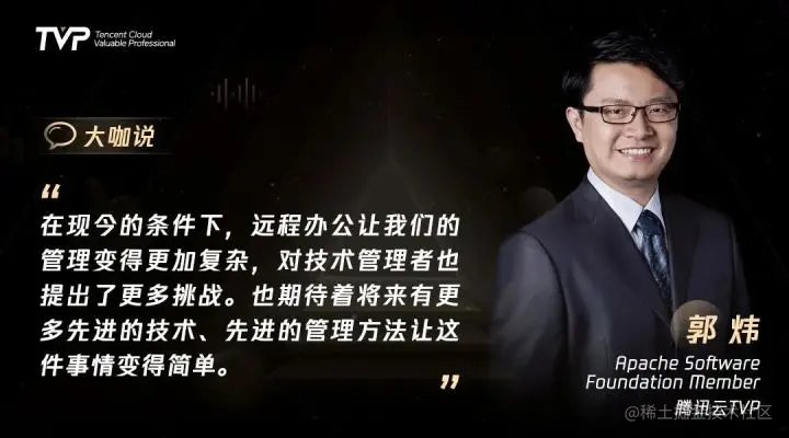TVP 自成立之初,便希望能够“用科技影响世界”,让技术普惠大家,践行科技向善的初心与本心。正如TVP大咖们所言,也许远程办公的团队管理还缺乏经验分享、著作产出,但谁知道在这样的思想碰撞以后,会不会启发更多的有心人呢?