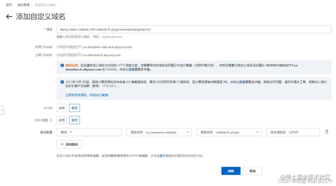 接下来设置函数计算控制台上的自定义域名: