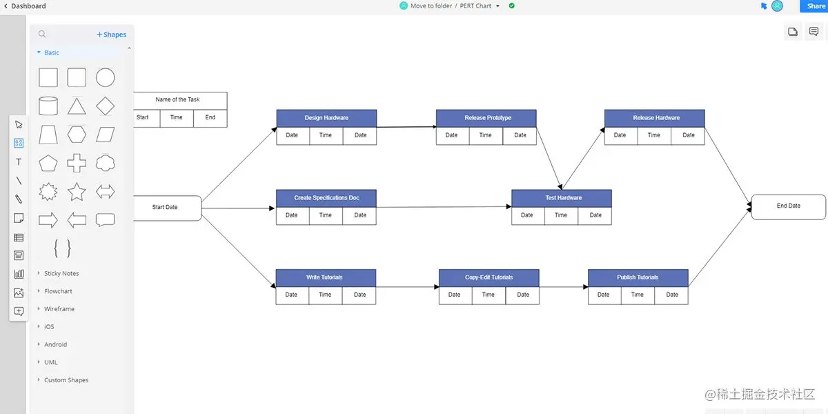 该工具有一些高效和专业的PERT图表模板供你选择。