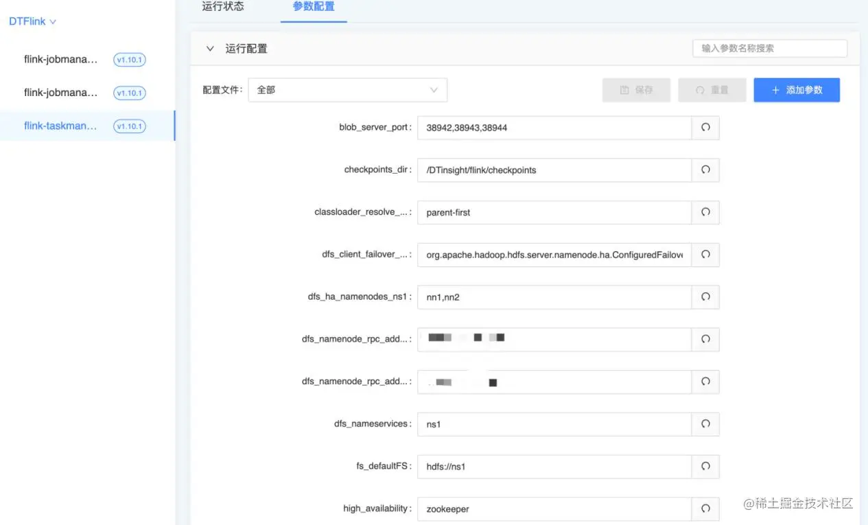 ● 对于集群状态信息:我们在部署flink的时候我们会部署好基础组件包,如zookeeper、redis、mysql等,同样也能通过上面提取的配置参数进行修改对接外部基础组件。