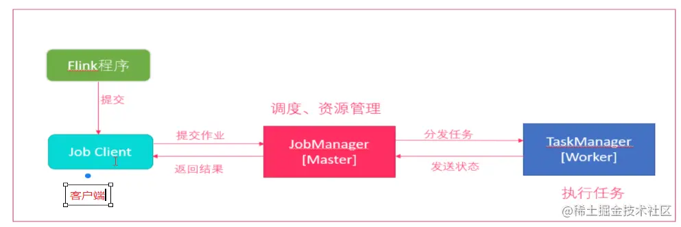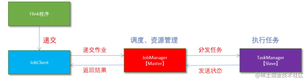 客户端(Client)、作业管理器(JobManager)和任务管理器(TaskManager)。