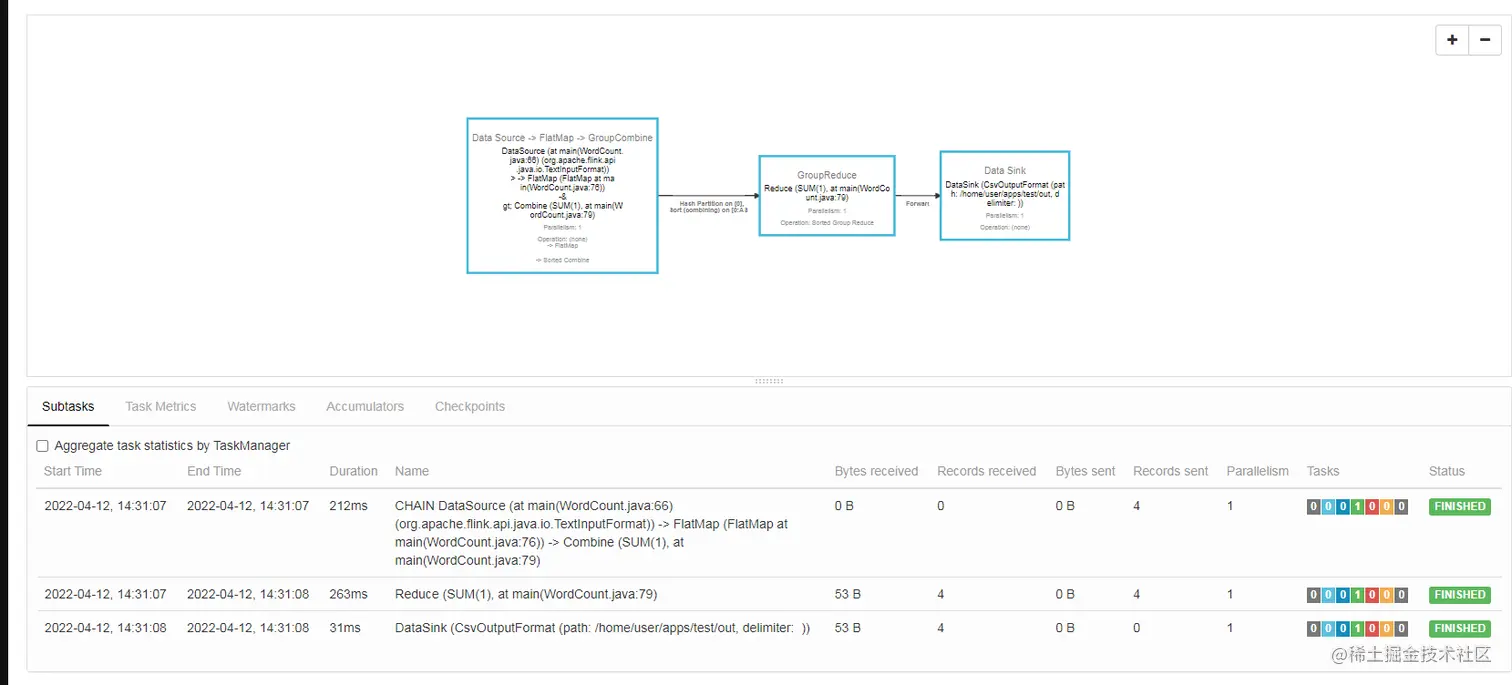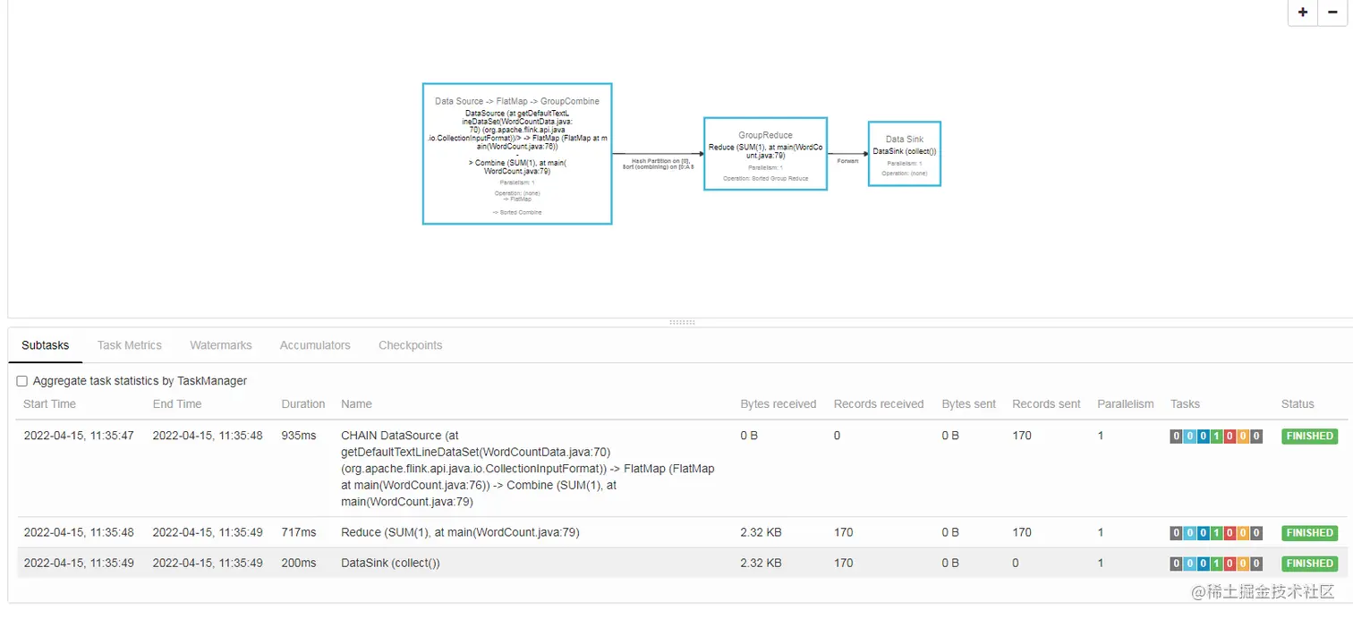 - 也可以通过 Flink 的 Web UI 页面查看提交任务的运行情况