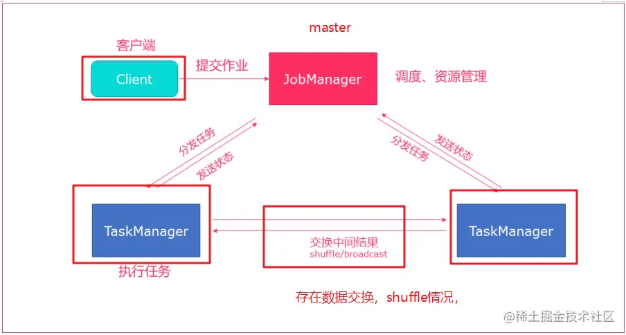 JobManager负责协调资源分配和作业执行。资源分配完成后,任务将提交给相应的TaskManager