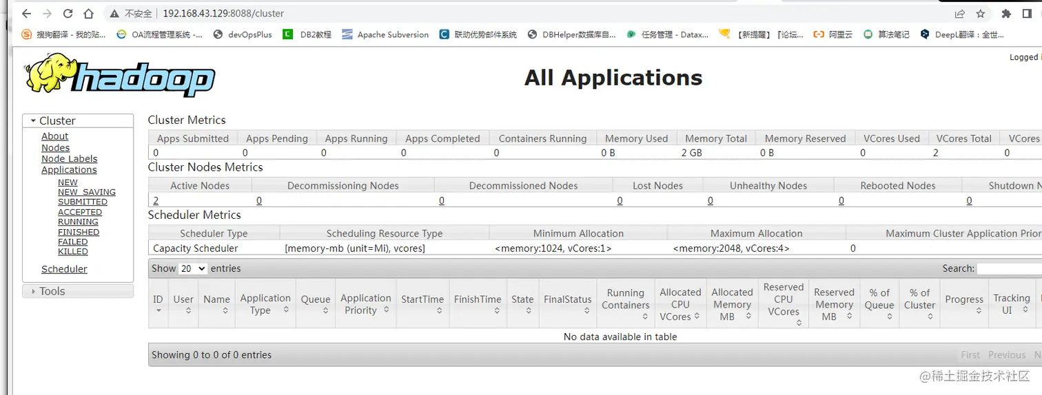 - 在 YARN 的 ResourceManager 界面查看执行情况