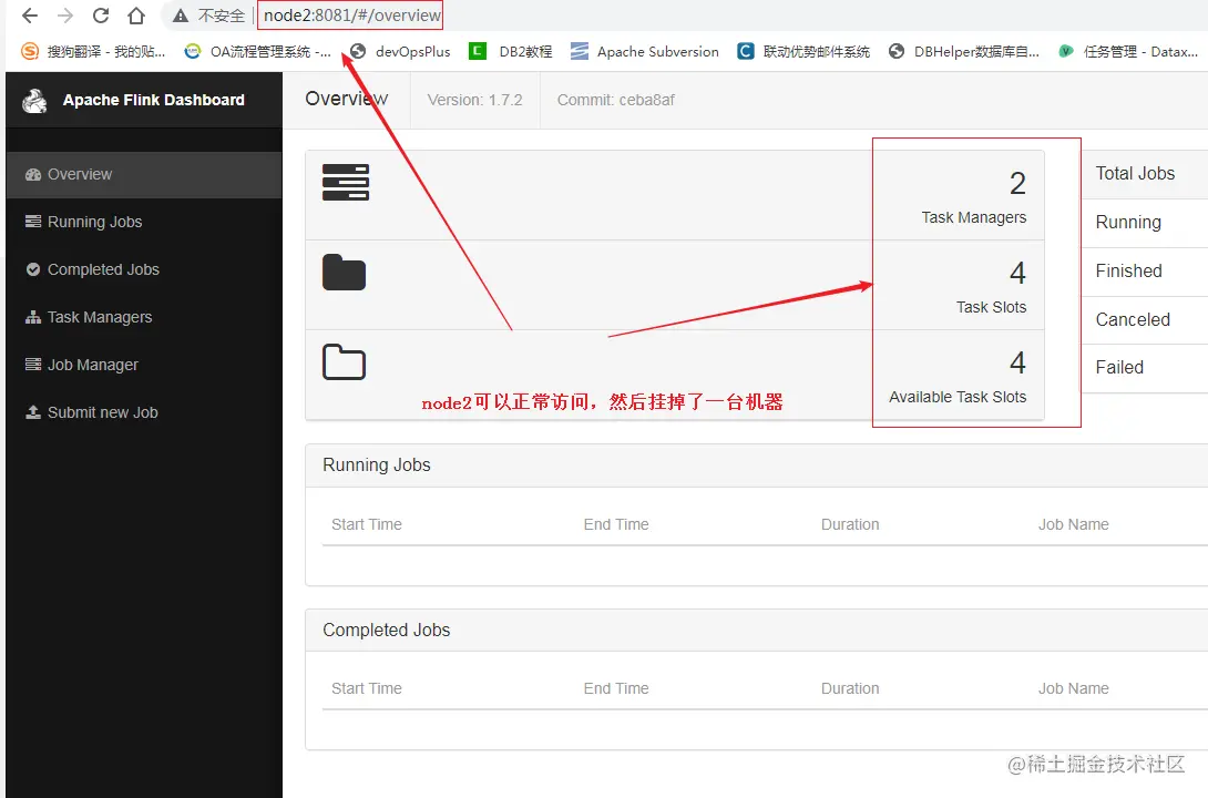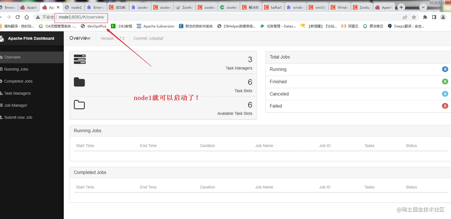 - 我们输入http://node1:8081访问Flink