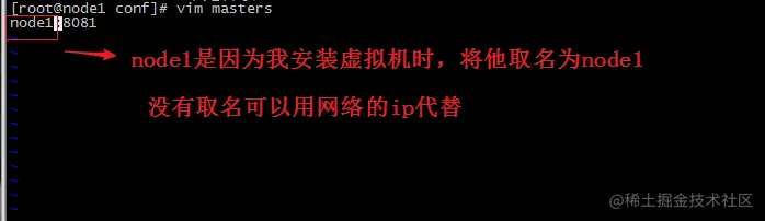 [root@node1 conf]# vim masters node1:8081node2:8081
