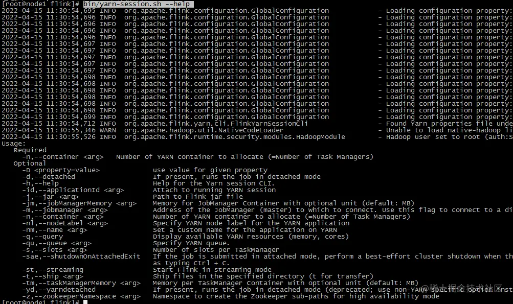 (3)使用bin/yarn-session.sh --help 查看可用参数: