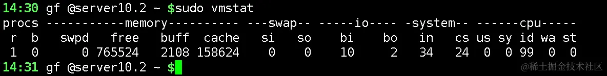 vmstat是Virtual Meomory Statistics(虚拟内存统计)的缩写,可对操作系统的虚拟内存、进程、CPU活动进行监控,对系统的整体情况进行统计。