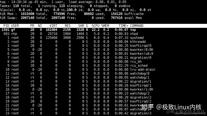 top 命令可以显示进程的很多信息,包括物理内存、虚拟内存、CPU使用率、平均负载以及繁忙的进程等。例如: