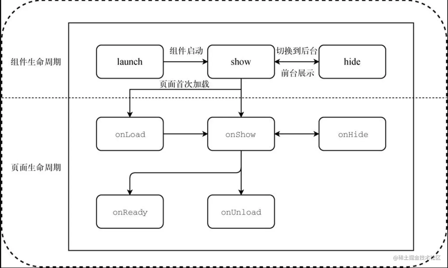 小程序完整的生命周期,包括组件生命周期和页面生命周期。