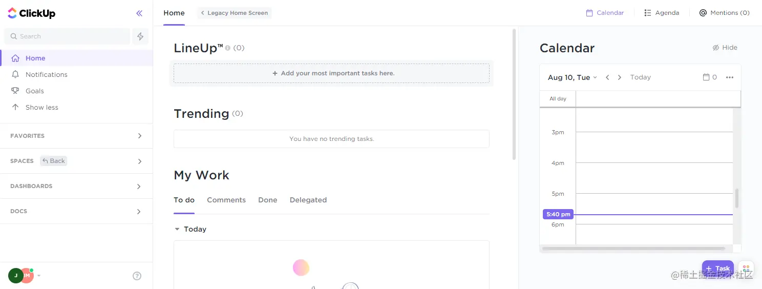 在这里,生产力是王道,因此,ClickUp的特点是可以轻松创建任务并将其分配到日历中。它还允许你设置目标和通知,以提醒你需要做什么和何时做。嵌套的子任务和检查清单是帮助分解更复杂任务的功能。