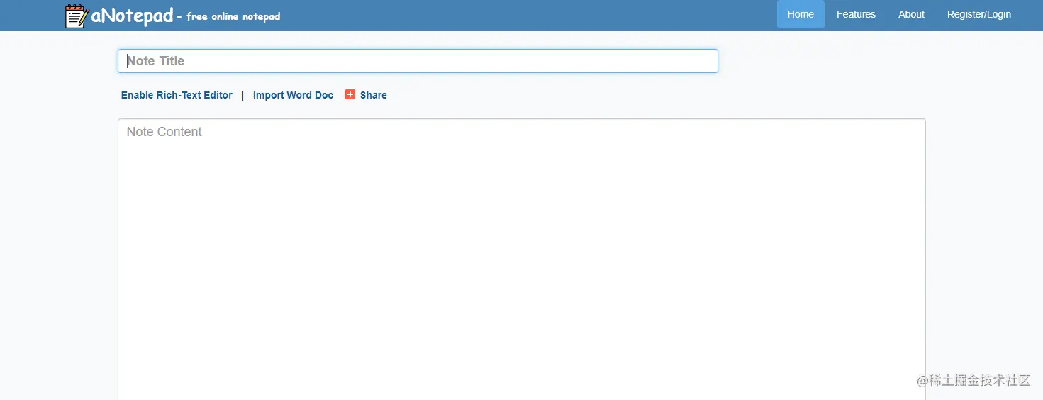在我们的列表中,首先是记事本。它是每一个好的记事本服务应该具有的特点--简单、干净、易于使用。它的用户界面包括一个白色的盒子,可以记下你的想法,如果你需要的话,还可以添加一个标题。通常这就是你对记事本的全部需求,而记事本在这方面做得很好。