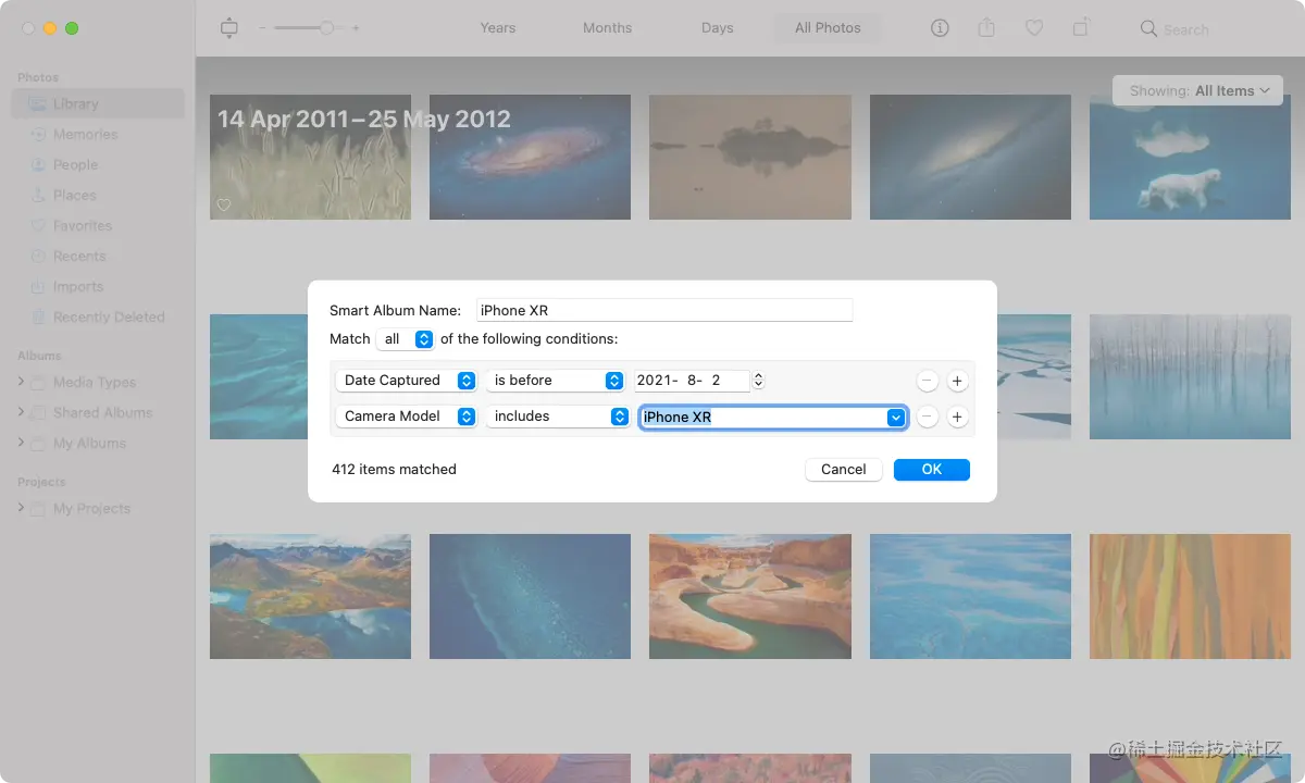 例如,你可以设置一个智能相册来显示在特定日期之前拍摄的照片,然后按相机型号进一步过滤。或者,你可以按文件名或标题过滤图片。这个功能有很多深度,所以要花时间去试验。然后你可以选择 "确定"来保存这些规则。