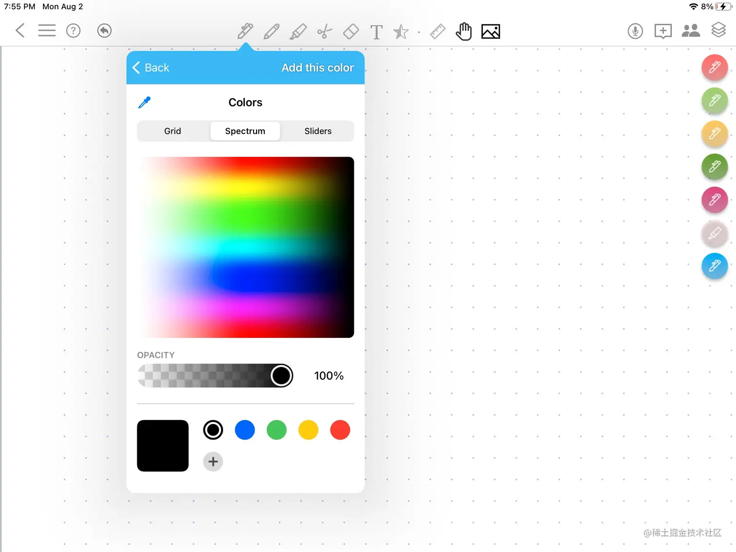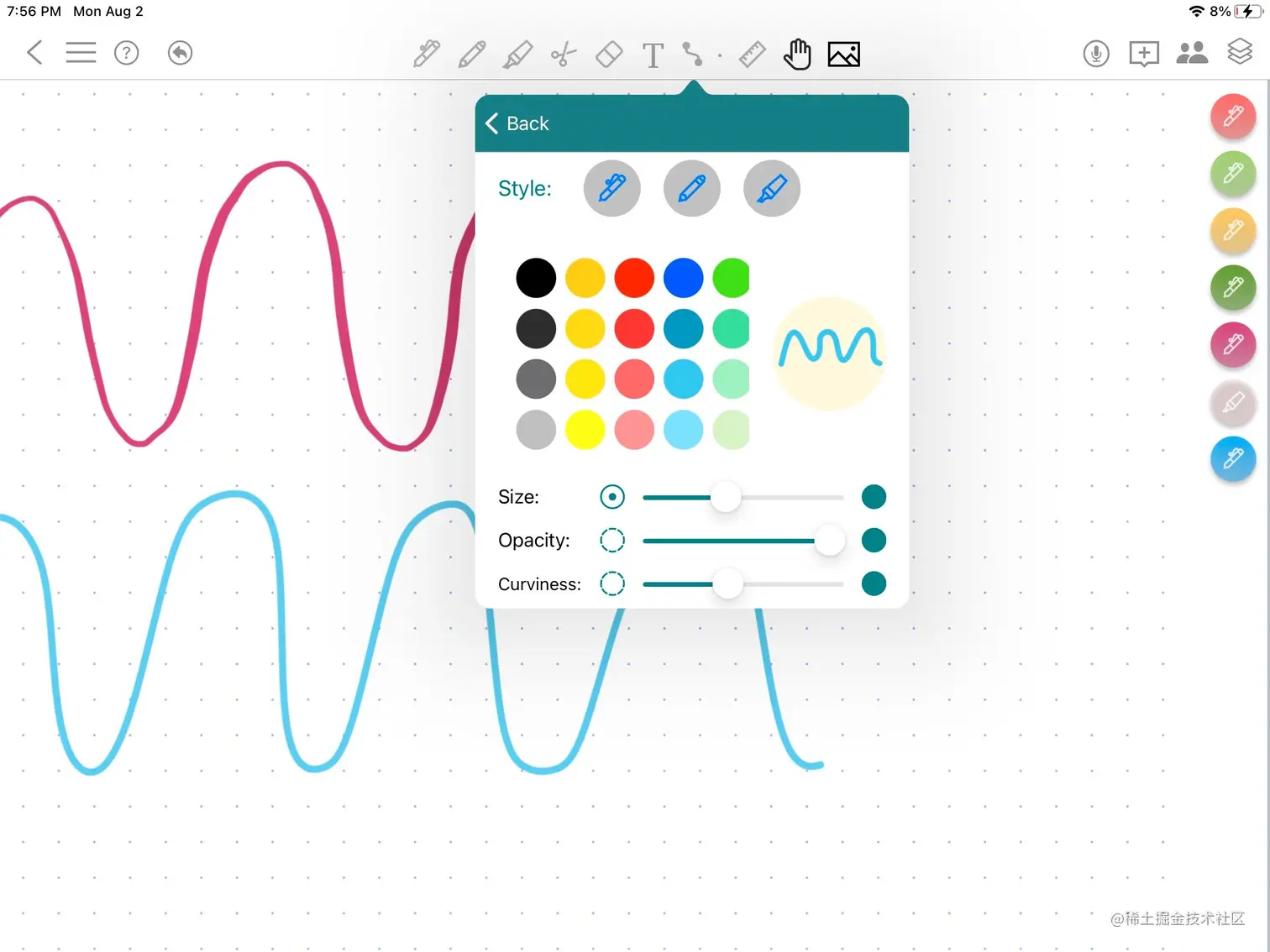 谁不喜欢自定义颜色的能力?该应用程序所拥有的默认调色板已经为你的笔记提供了大量漂亮的颜色。但如果你找不到完美的色调,你可以根据自己的喜好完全定制钢笔、铅笔和荧光笔工具。