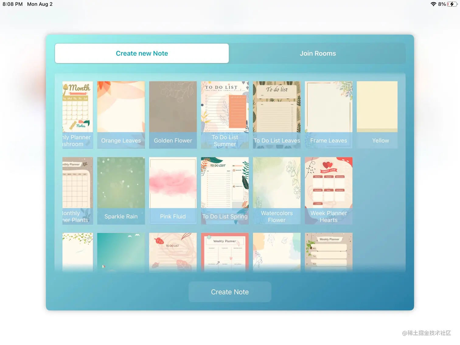 CollaNote还提供了一堆有趣的模板,供你在笔记中试用。你可以得到日历、待办事项清单、计划表和带有彩色框架的空白页。如果你想创建漂亮的笔记,但没有时间投入太多精力,这些设计就很好。