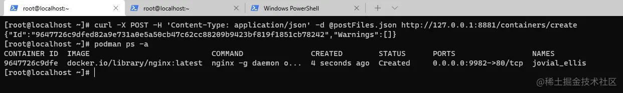 curl -X POST -H 'Content-Type: application/json' -d @postFiles.json http://127.0.0.1:8881/v3.0.0/libpod/containers/create