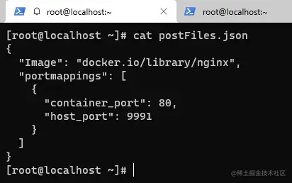 curl -X POST -H 'Content-Type: application/json' -d @postFiles.json http://127.0.0.1:8881/v3.0.0/containers/create