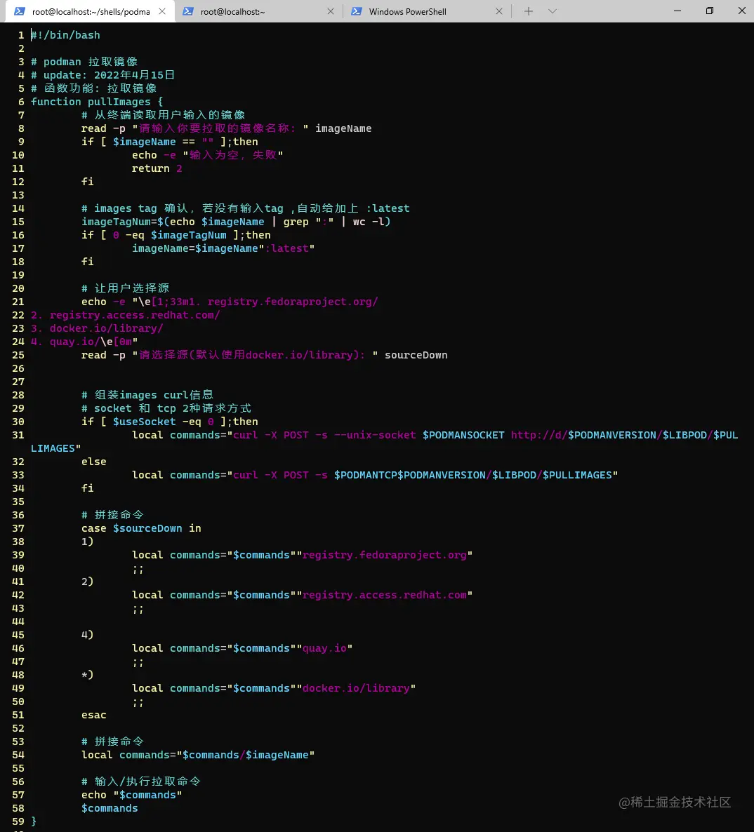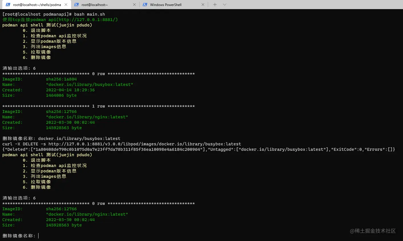 小工具加入了镜像拉取 和 镜像删除 的方法,通过上面的脚本,我们可印证之前的结论,那就是shell