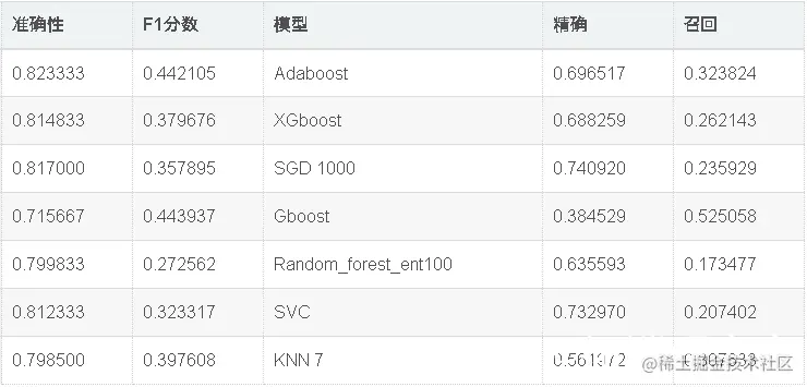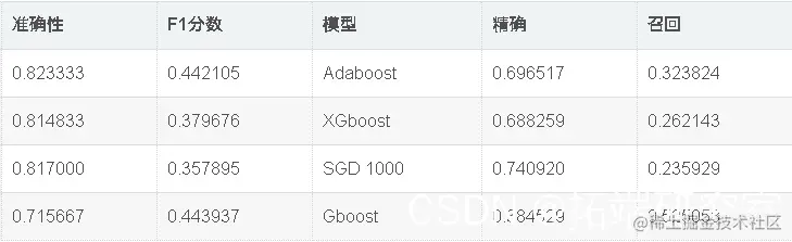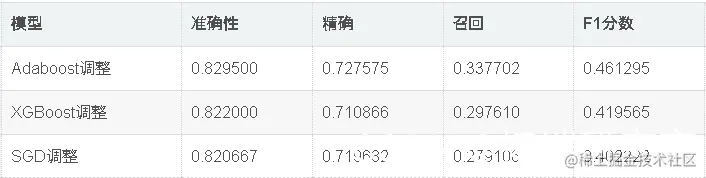 出色的所有指标参数准确性,F1分数精度,ROC,三个模型adaboost,XGBoost和SGD的召回率现已优化。此外,我们还可以尝试使用其他参数组合来查看是否会有进一步的改进。