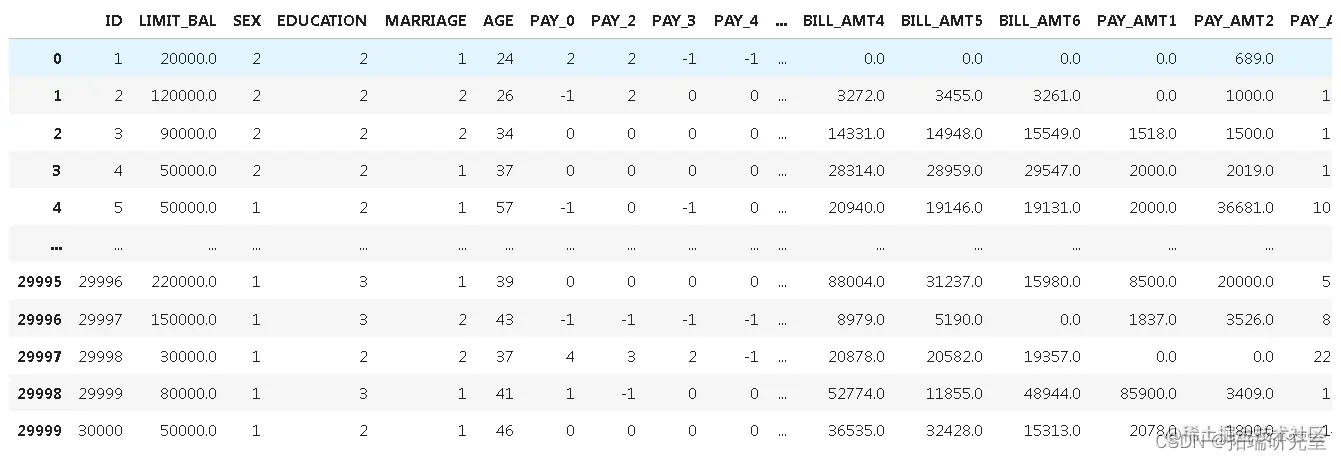 7. PAY_0: 2005年9月的还款状态(-1 =正常付款,1 =延迟一个月的付款,2 =延迟两个月的付款,8 =延迟八个月的付款,9 =延迟9个月以上的付款)