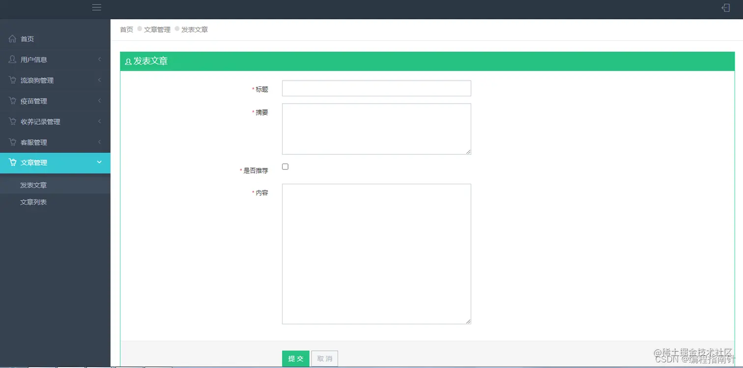 本项目基于SSM实现一个宠物领养平台,分为系统前端和后端,用户登陆网站可以实现查看博客,领养宠物,送养宠物等,后台管理可以实现用户管理,宠物管理,领养审批,文章管理,留言管理等管理操作