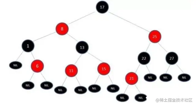 例如:插入了结点21之后,红黑树处理成: