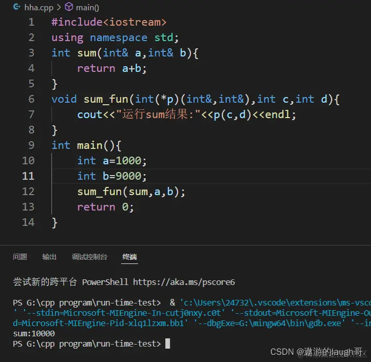 cout<<"运行sum结果:"<<p(c,d)<<endl;