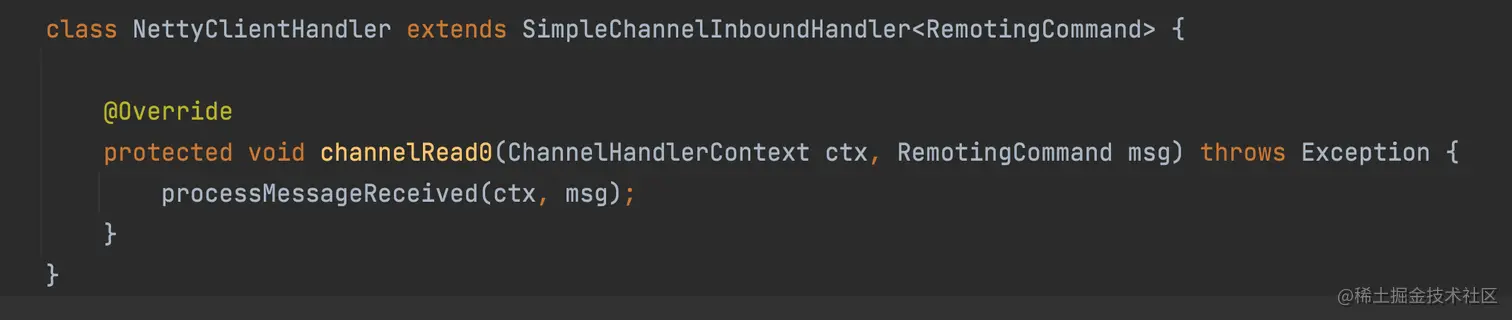// 而NettyRemotingClient配置的最后一个Handler为NettyClientHandler