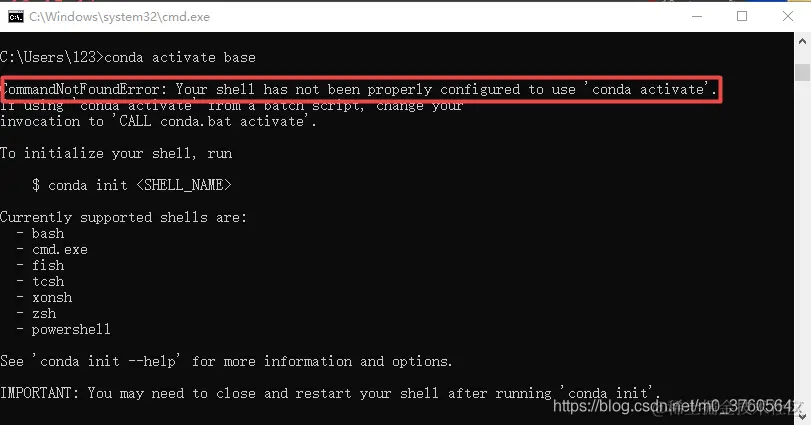 (4)CommandNotFoundError: Your shell not been properly configured to use 'conda activate'.