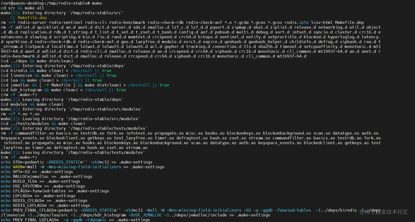 在执行测试make test前需要安装tcl工具,如果你的系统是CentOS/Rhel系统,可以执行以下命令安装: