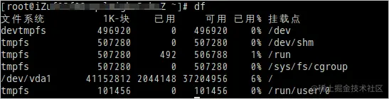 df命令描述:该命令检查文件系统的磁盘空间占用情况。可以利用该命令来获取硬盘被占用了多少空间,目前还剩下多少空间等信息。